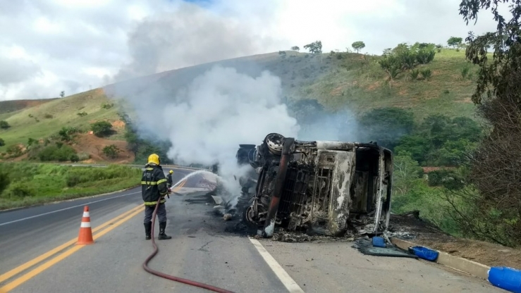 Caminhão tomba e atinge casa em Padre Paraíso, no Vale do Jequitinhonha